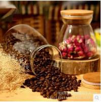 批发竹木盖梯形储物罐茶叶罐糖果罐 耐热玻璃茶具玻璃密封