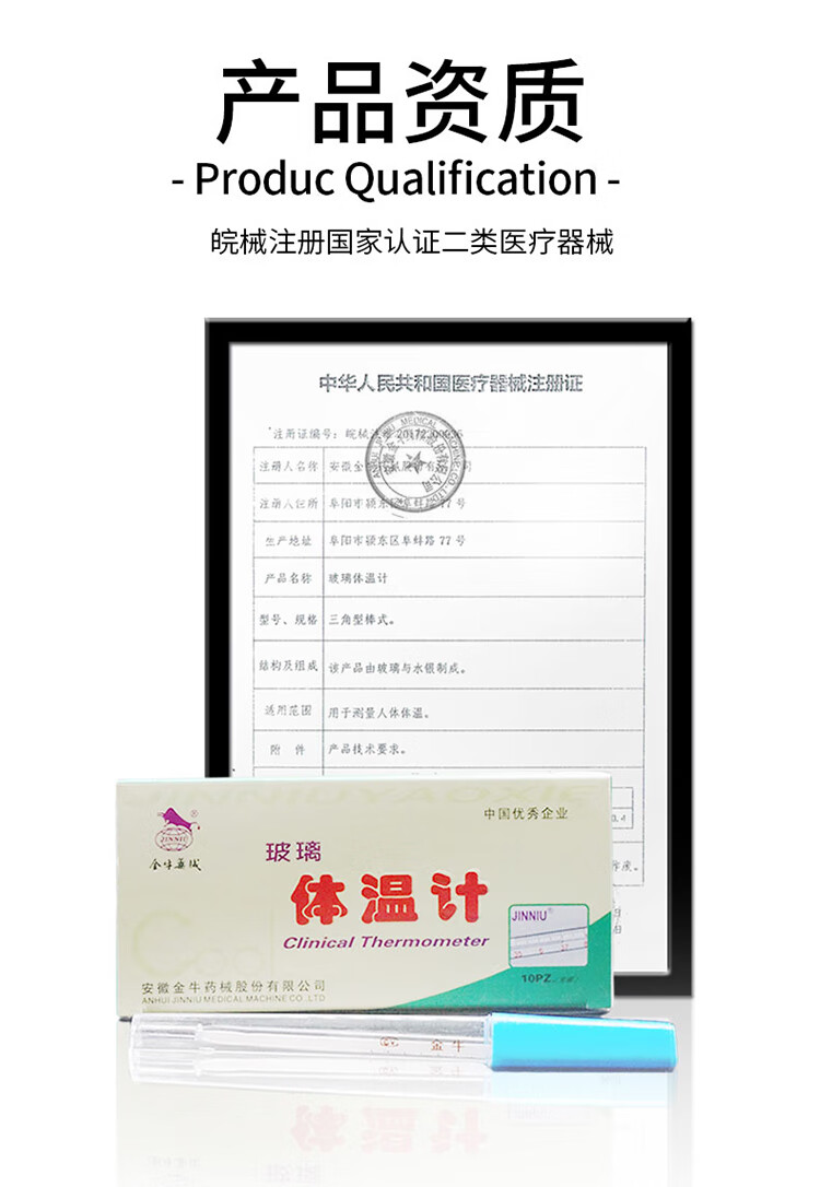 金牛JINNIU玻璃体温计体温计水银温度计测人体温表家用精准腋下口腔婴儿童成人10支/盒*5