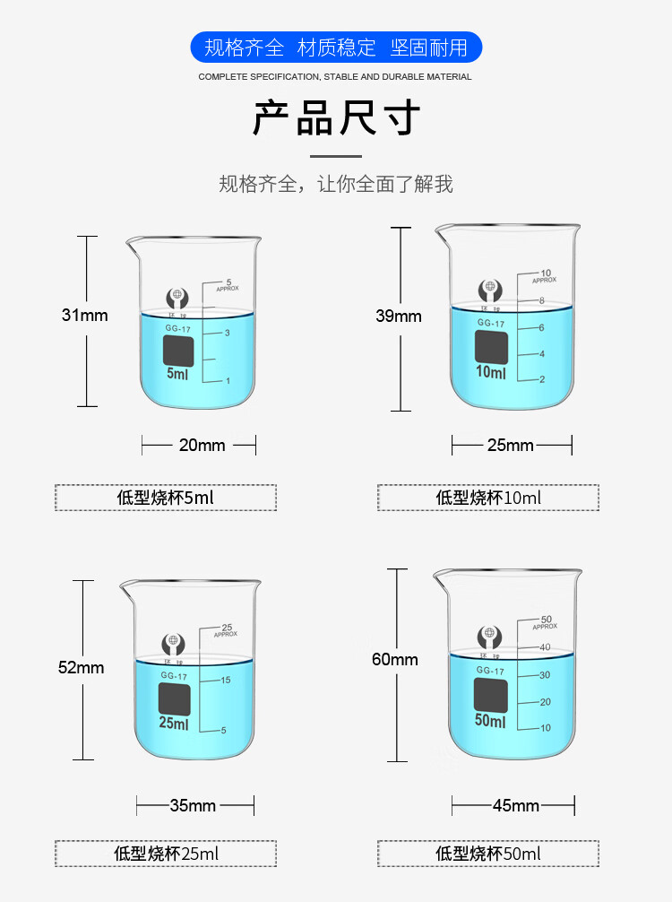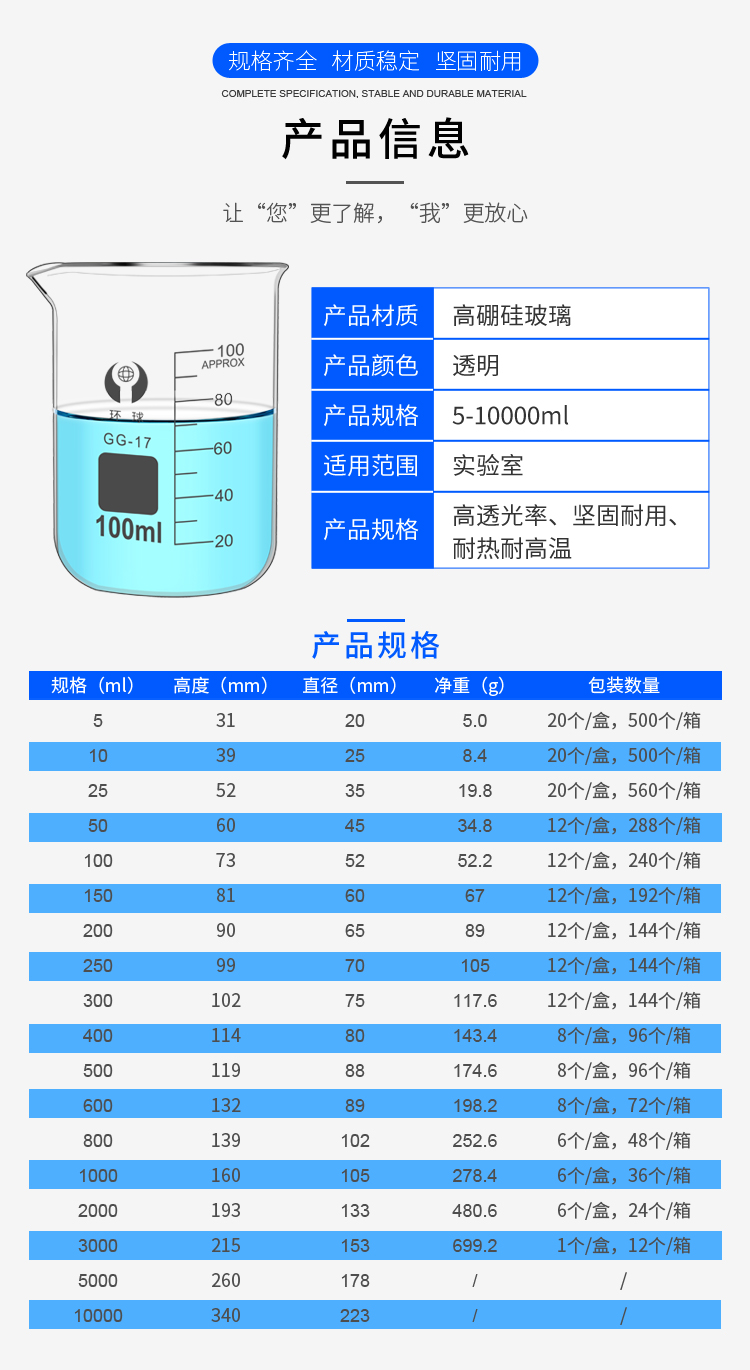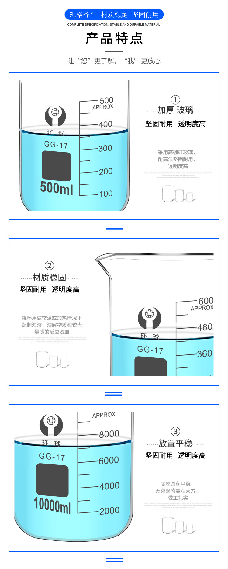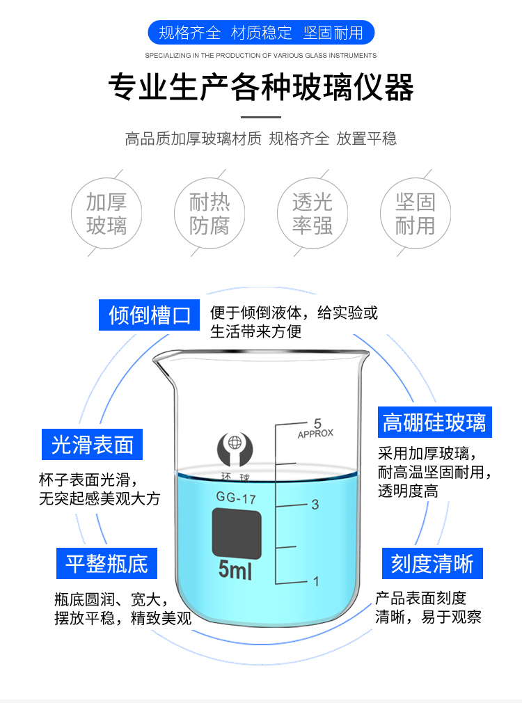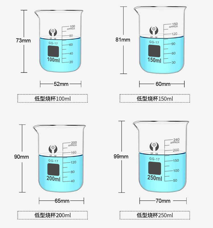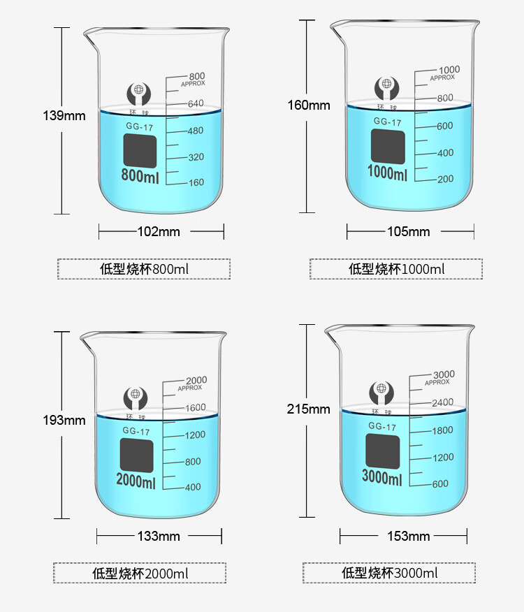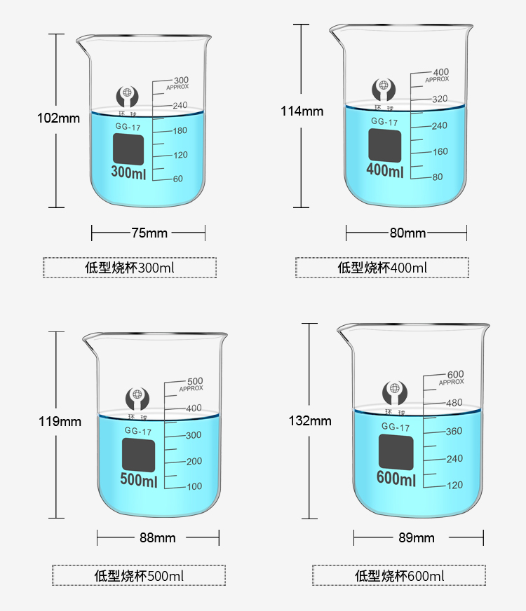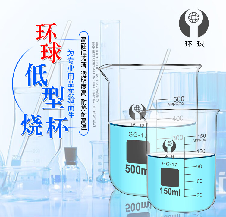 环球烧杯玻璃10050010002000ml耐高温化学实验器材带刻度大KATEWINSLET烧杯500ML