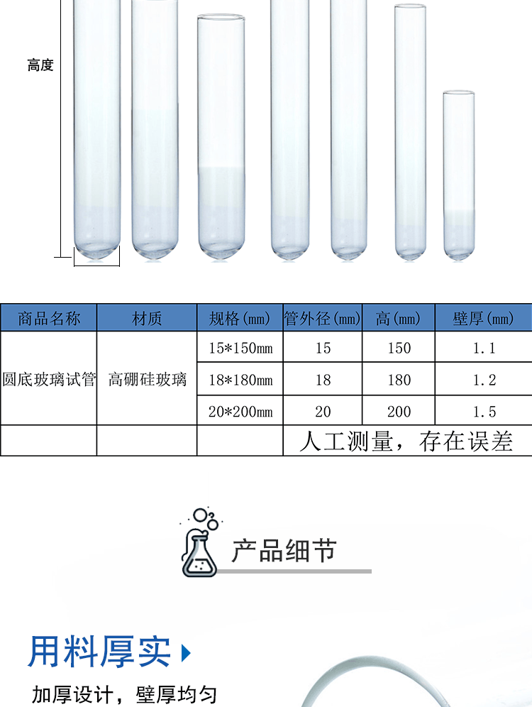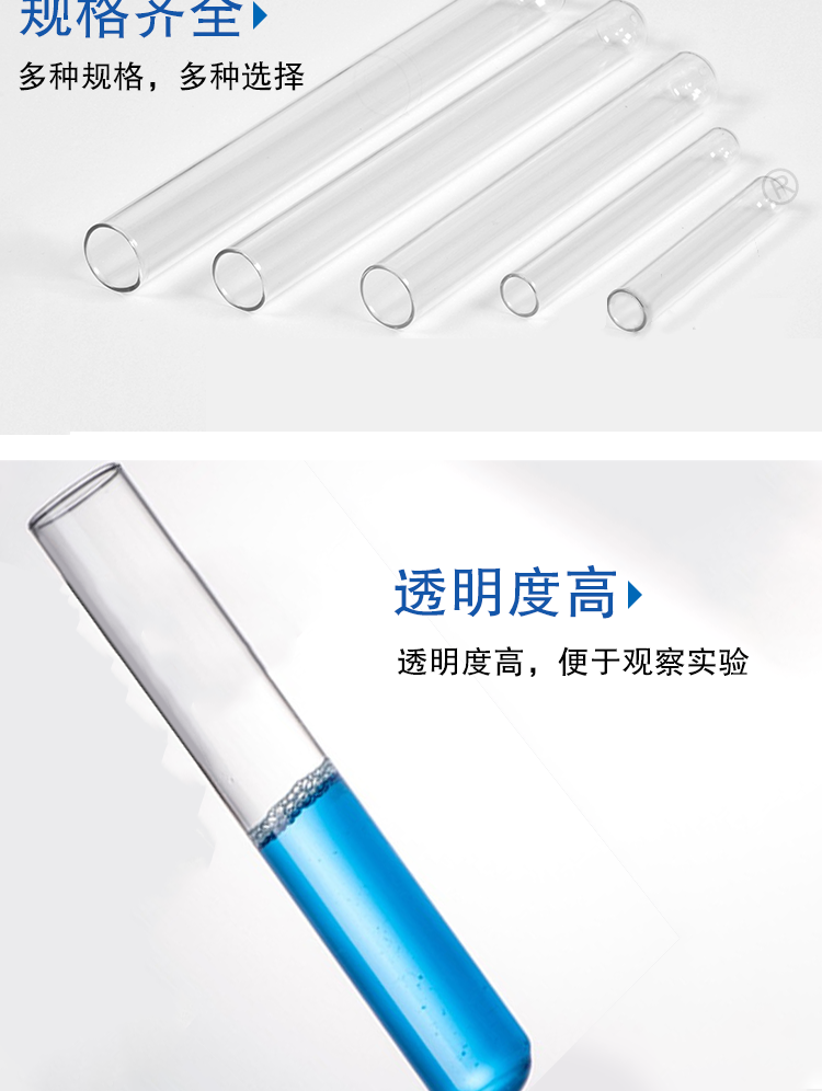 六鑫玻璃试管平口玻璃试管圆底试管高硼硅实验试管直径15/18/20mm化学实验试管10根18*180mm【10根装】