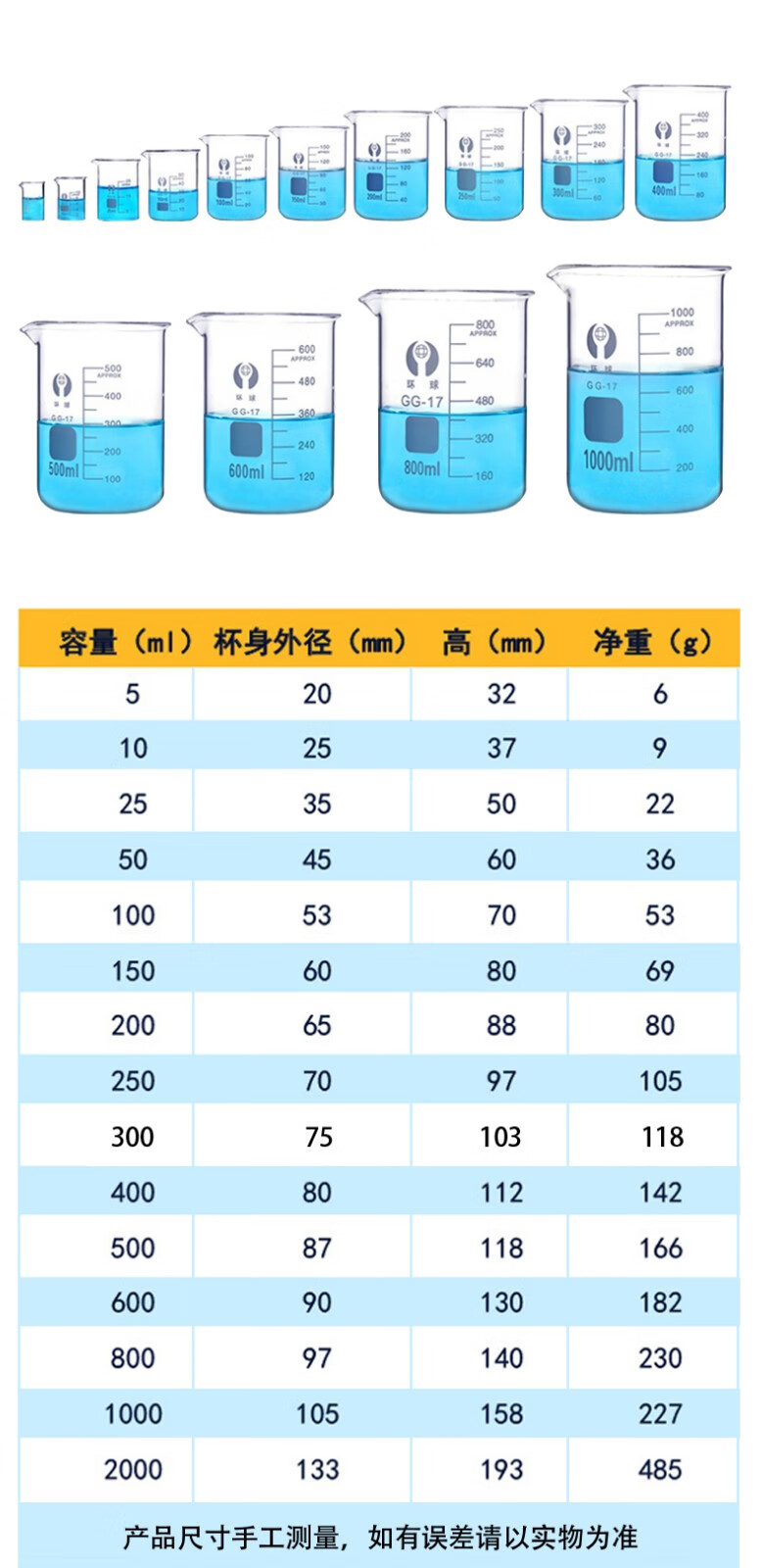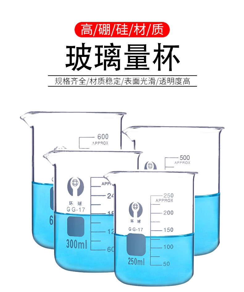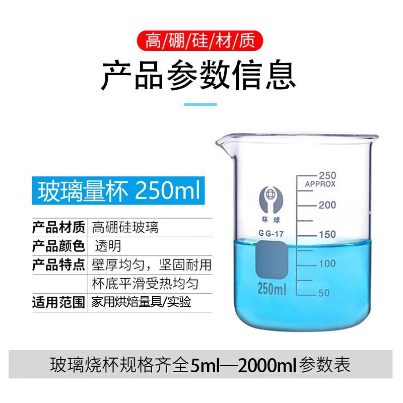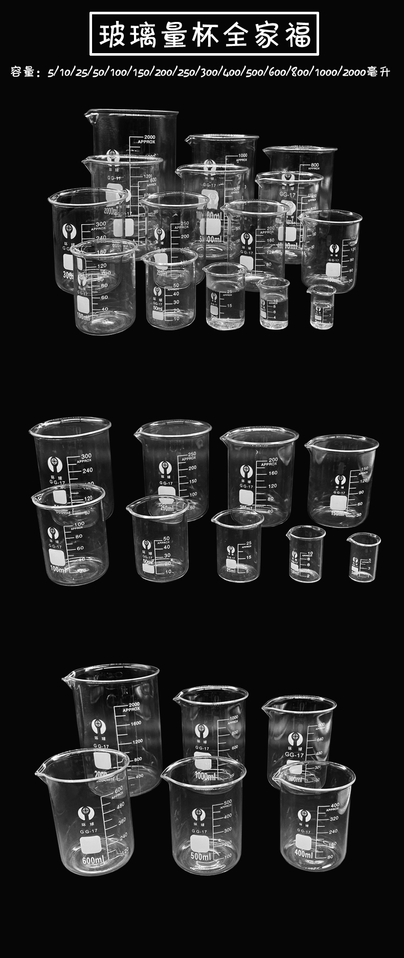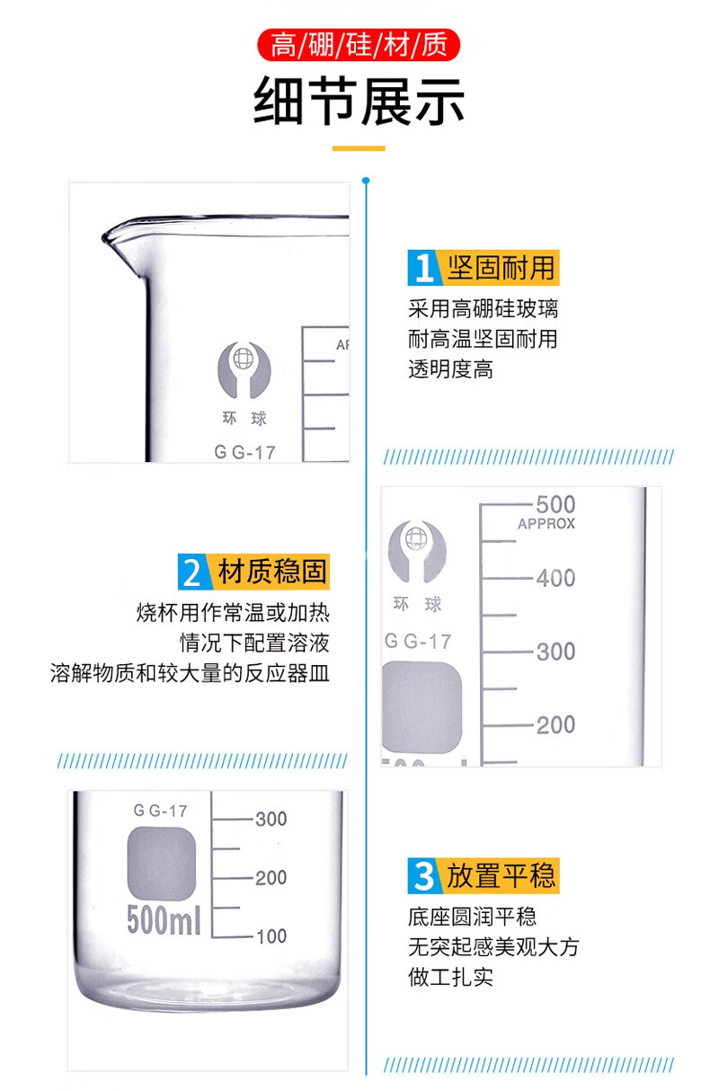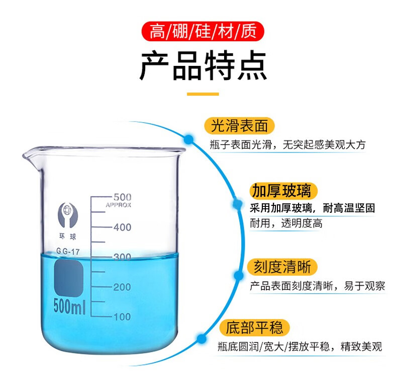 巴比客玻璃量杯量筒烧杯高硼硅耐高温杯烧杯烘焙杯带刻度加厚化学实验器材演示器材无手柄500毫升1个