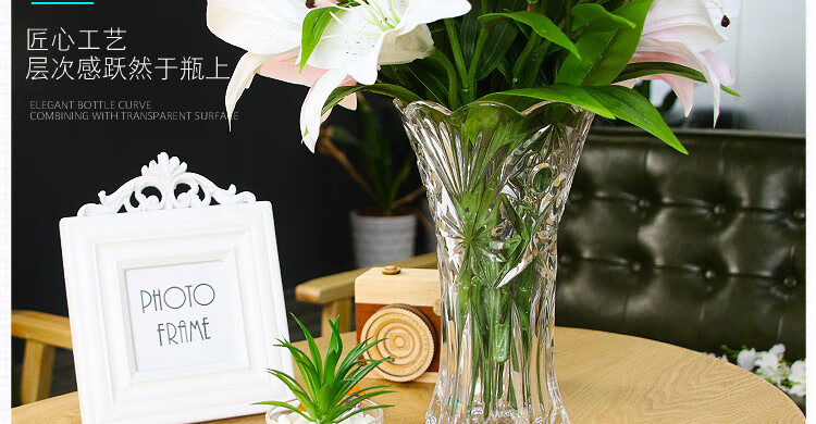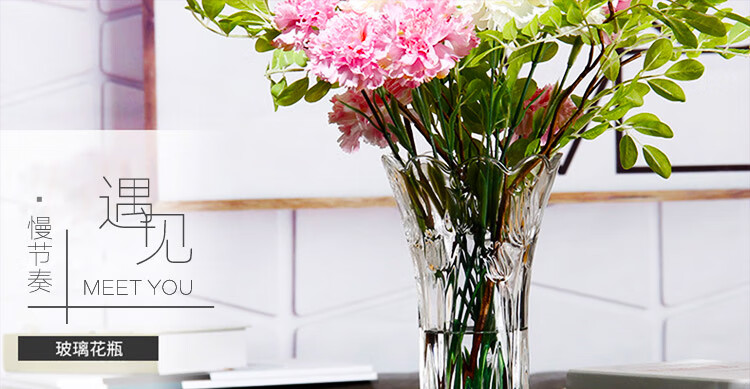 极度空间玻璃花瓶插花瓶绿植物水培养生态瓶养花容器创意礼物书桌办公桌家居装饰摆件郁金香浮雕花瓶