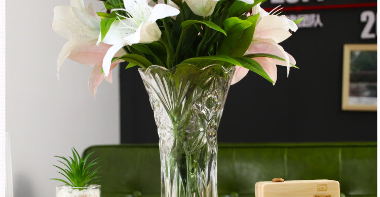 富居FOOJO轻奢玻璃花瓶插花假花仿真花桌面客厅摆件北欧简约装饰水养插花冰川花瓶透明款高19.7cm(不含花)