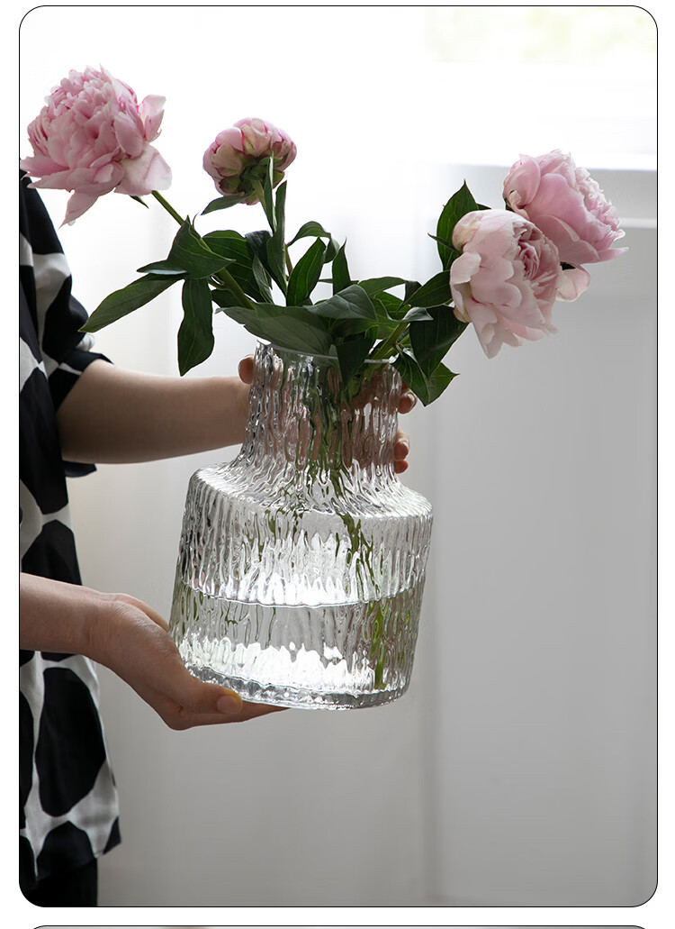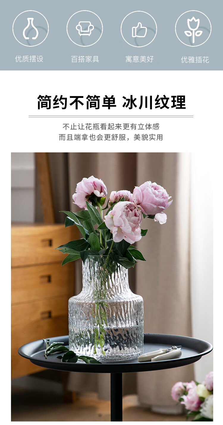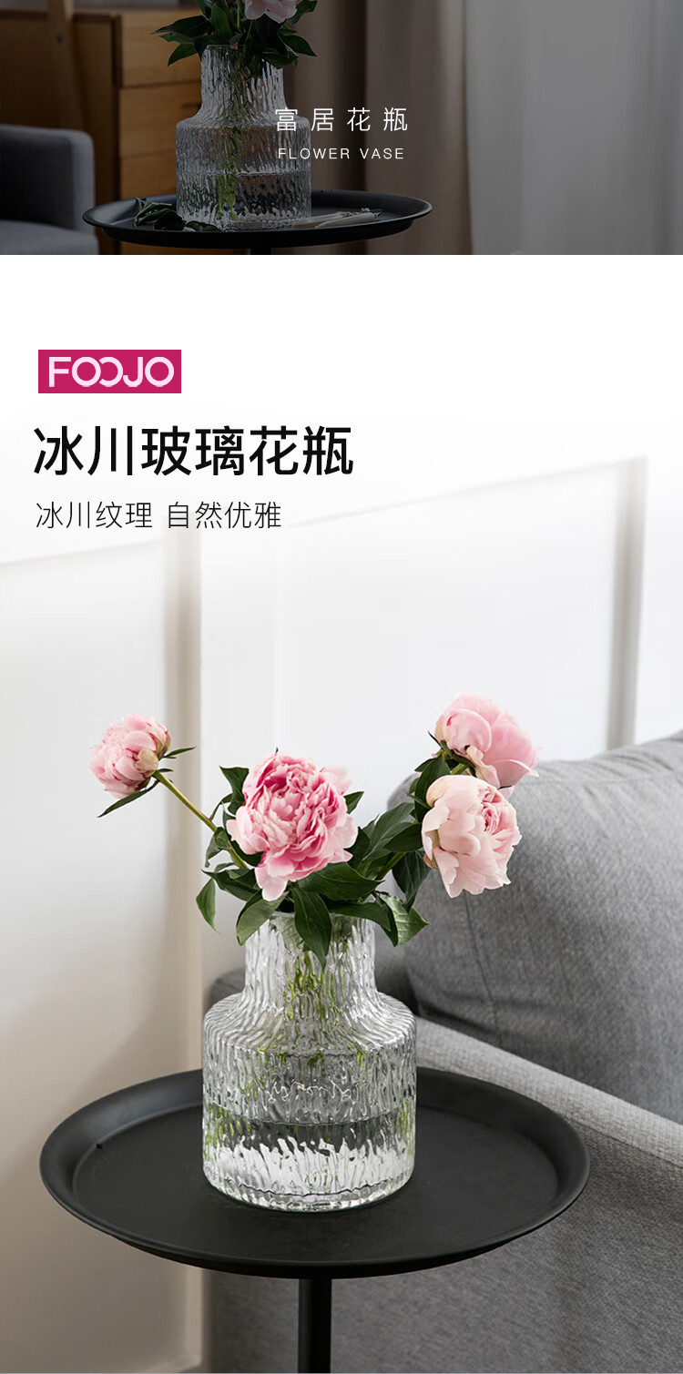 富居FOOJO轻奢玻璃花瓶插花假花仿真花桌面客厅摆件北欧简约装饰水养插花冰川花瓶透明款高19.7cm(不含花)