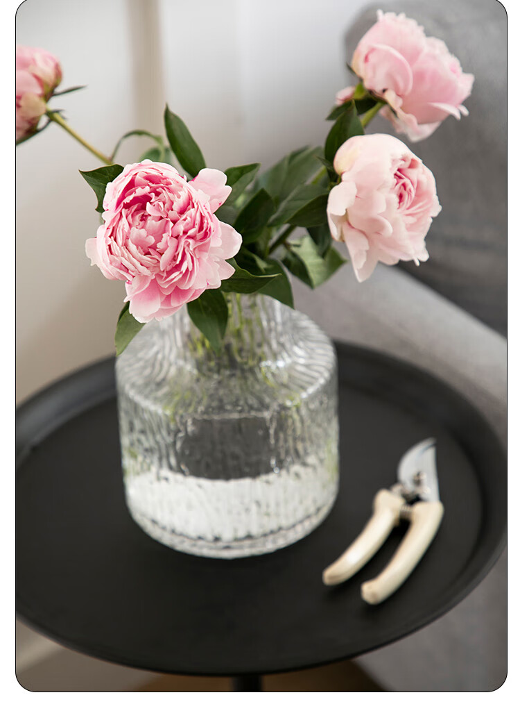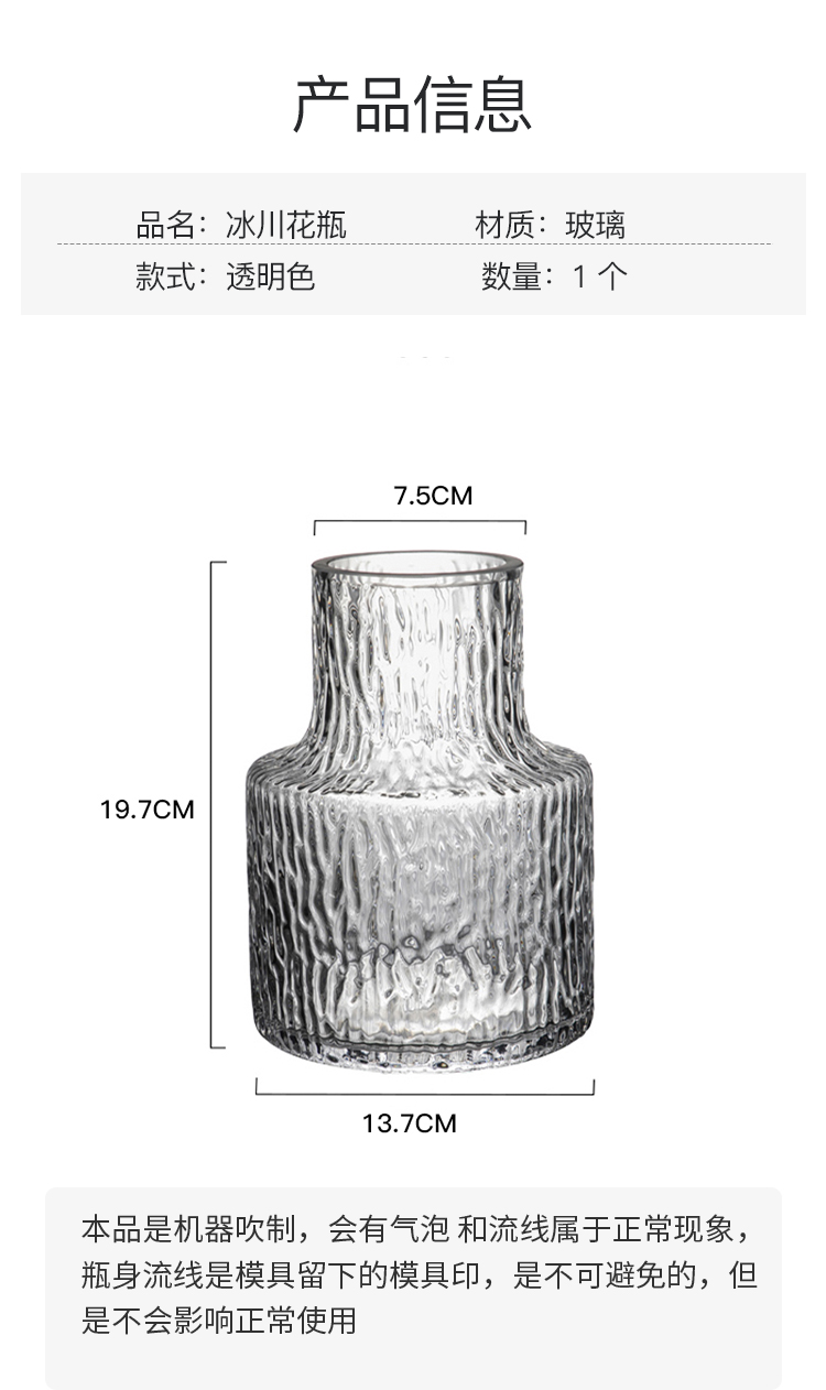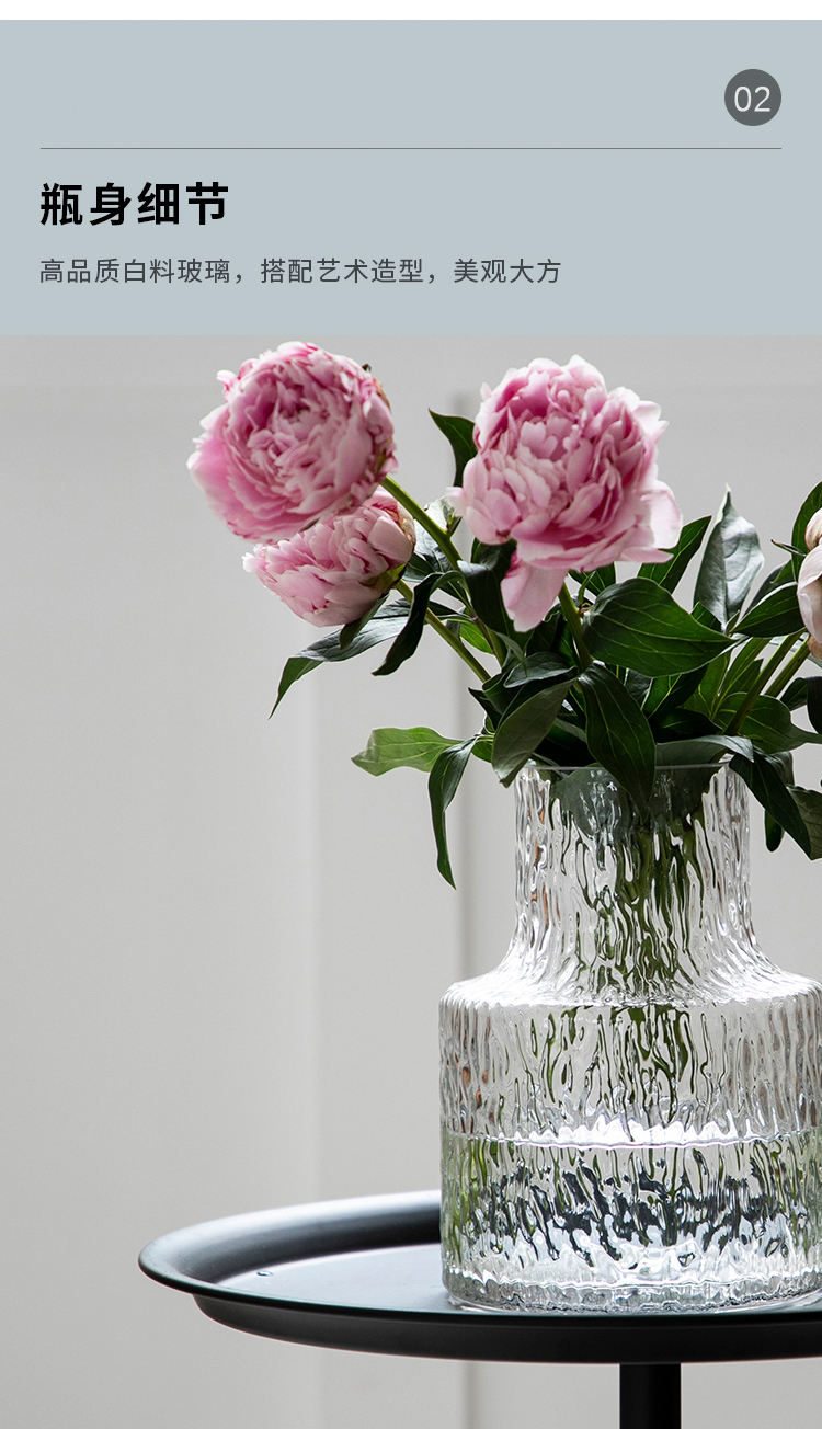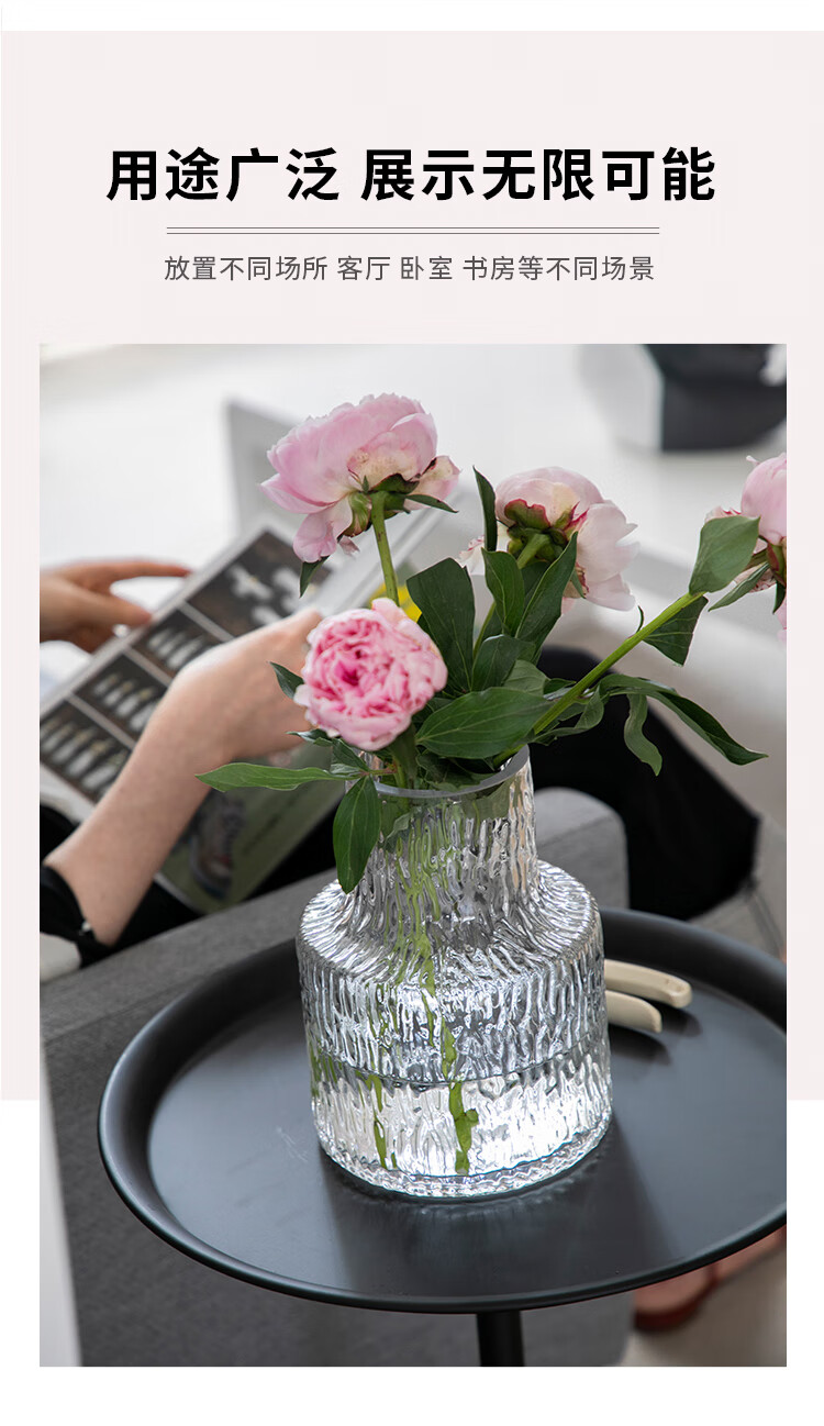 富居FOOJO轻奢玻璃花瓶插花假花仿真花桌面客厅摆件北欧简约装饰水养插花冰川花瓶透明款高19.7cm(不含花)
