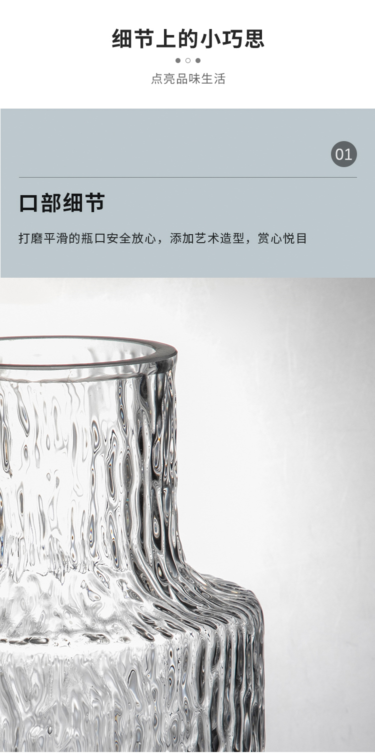 木丁丁波西米亚玻璃花瓶透明摆件客厅餐桌插花器轻奢水晶北欧式玫瑰富贵竹干花瓶波西米亚花瓶