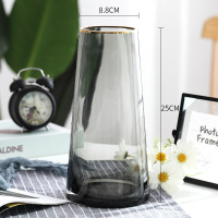 墨斗鱼 玻璃花瓶透明客厅水养插花干花描金花瓶桌面摆件创意水培富贵竹百合玻璃插花瓶 金色描边0418大号