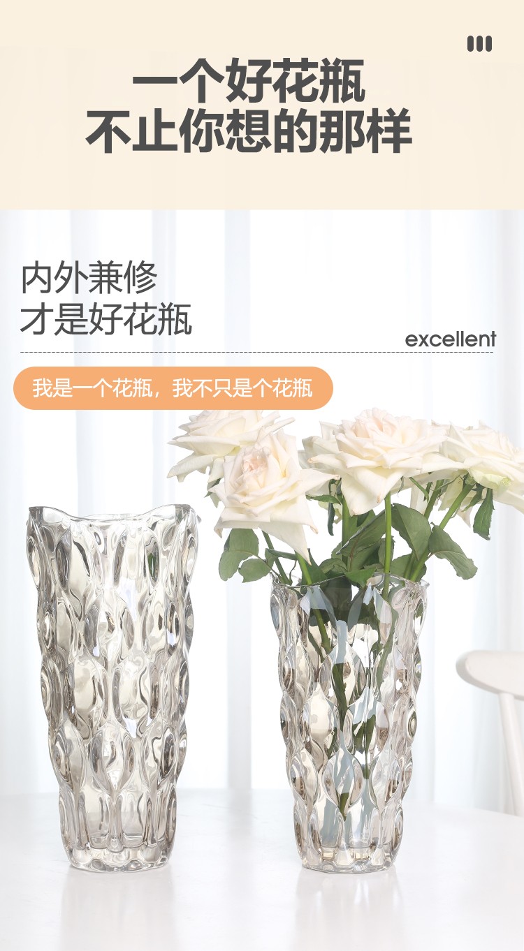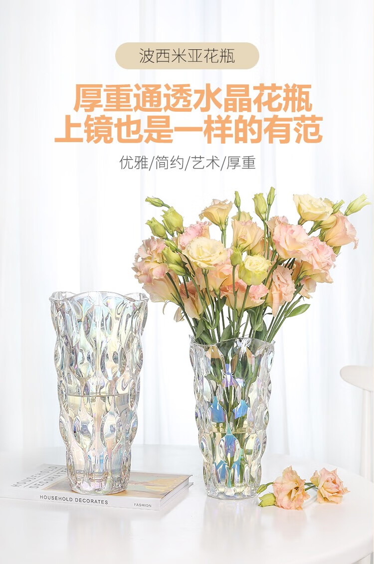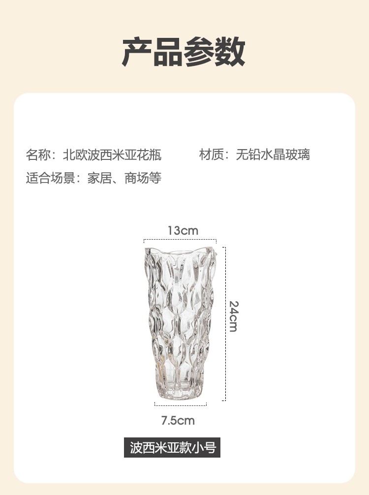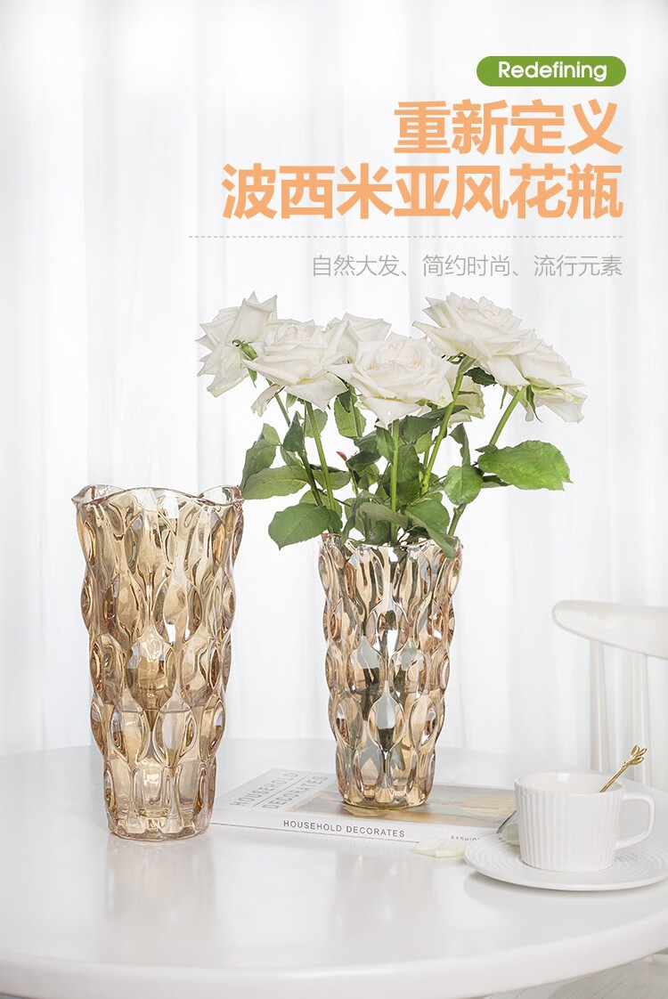 木丁丁波西米亚玻璃花瓶透明摆件客厅餐桌插花器轻奢水晶北欧式玫瑰富贵竹干花瓶波西米亚花瓶