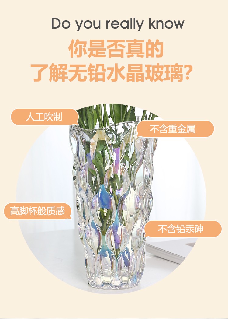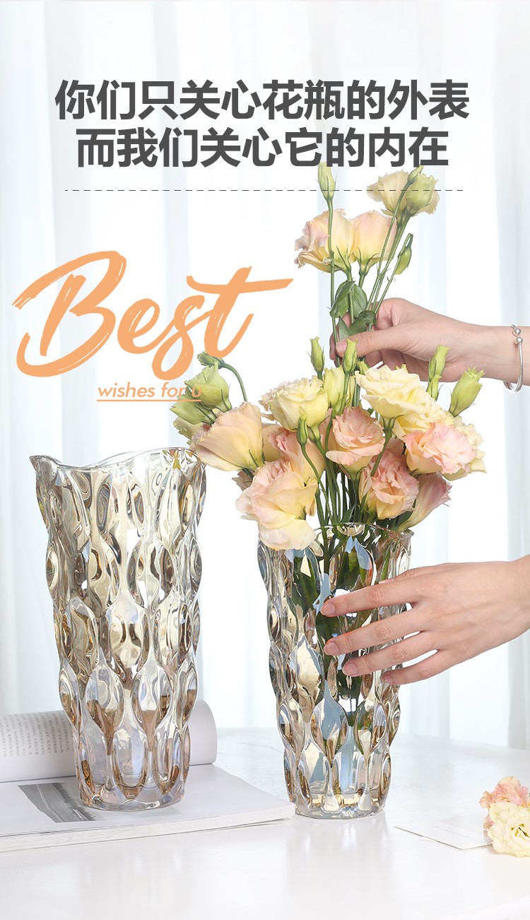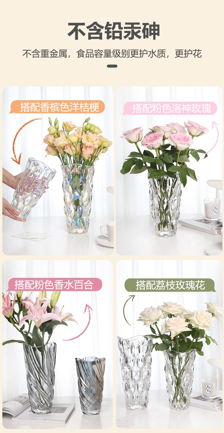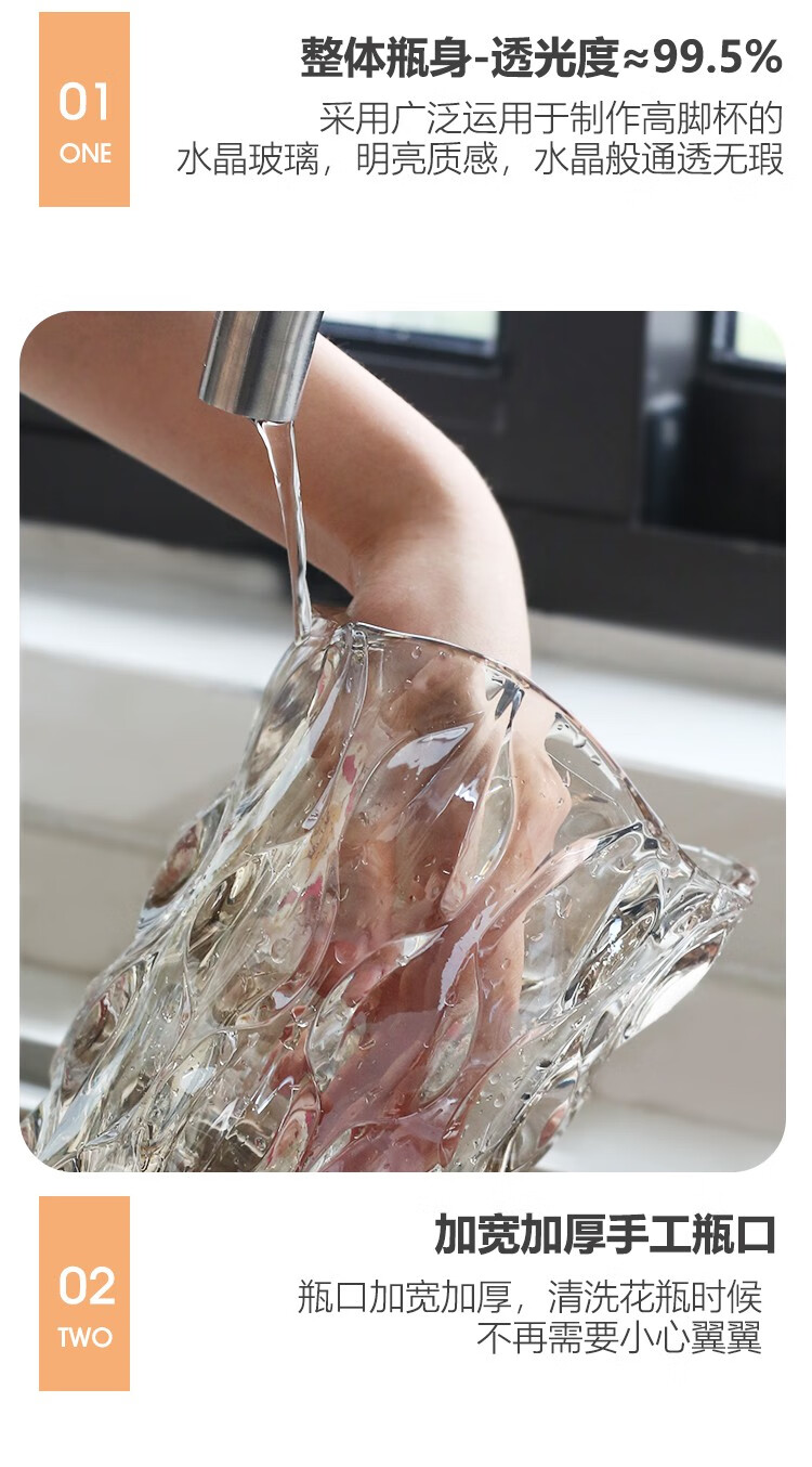 木丁丁波西米亚玻璃花瓶透明摆件客厅餐桌插花器轻奢水晶北欧式玫瑰富贵竹干花瓶波西米亚花瓶