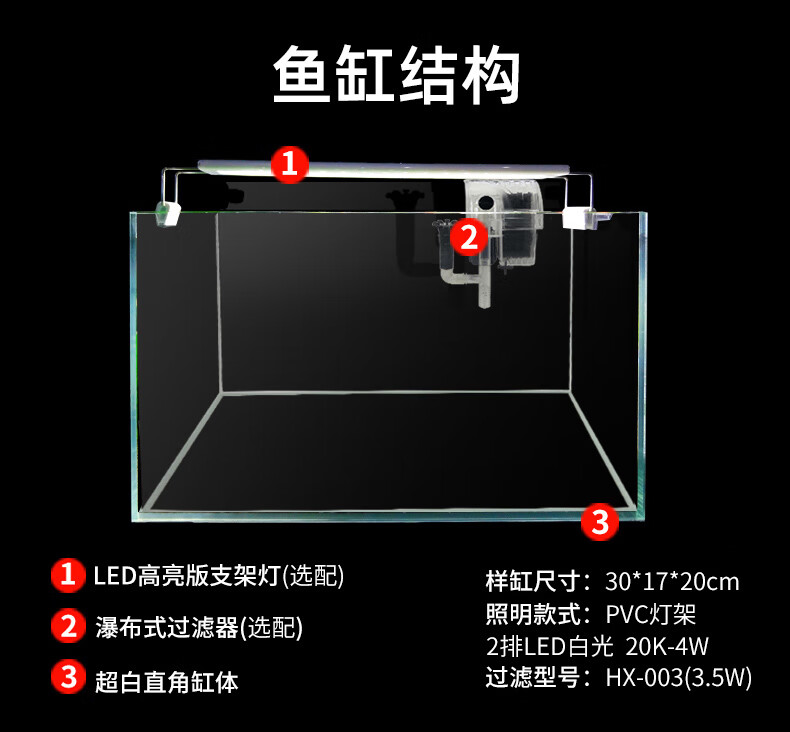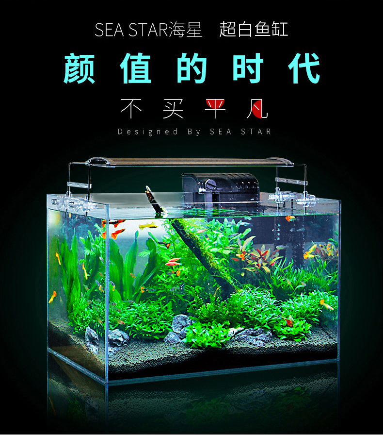 SEASTAR超白鱼缸超白玻璃水族箱小型鱼缸桌面客厅斗鱼乌龟缸草缸金鱼缸350*200*220过滤套装