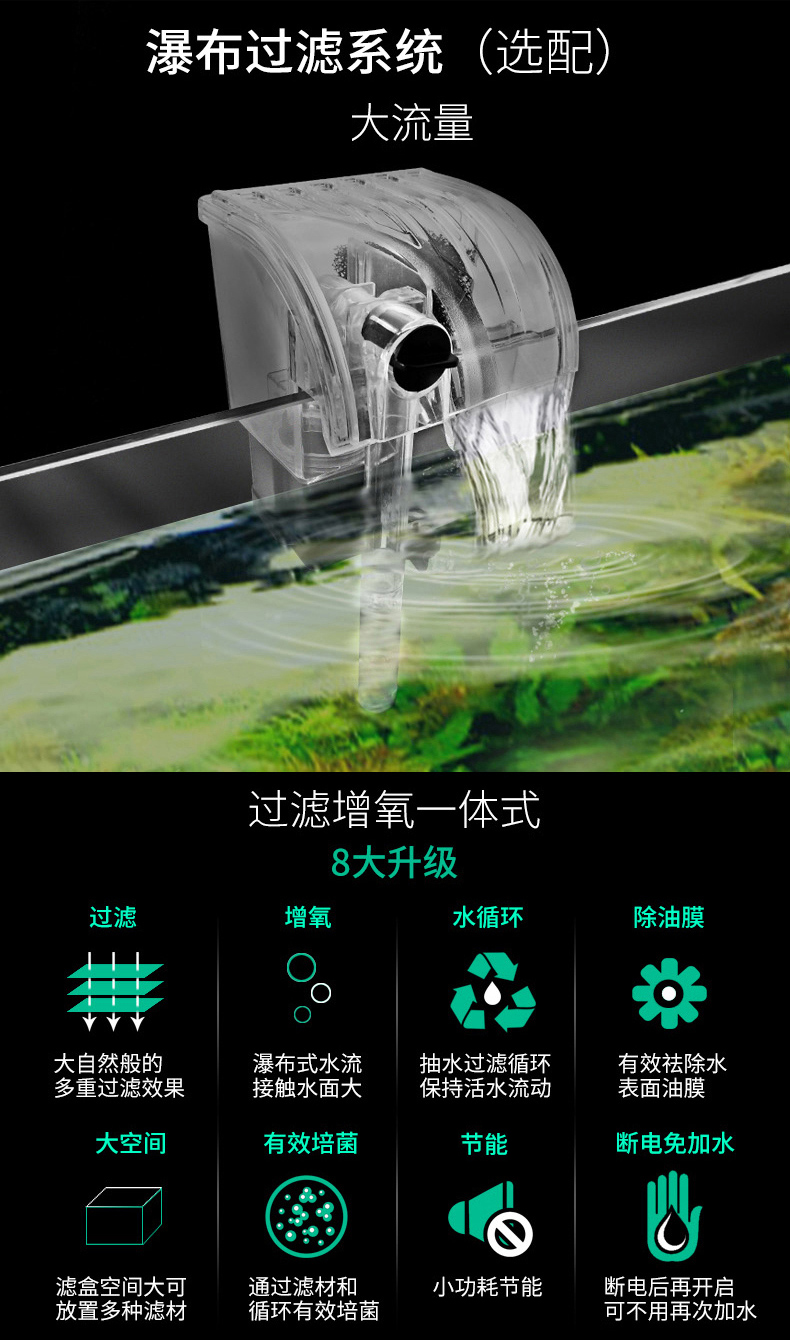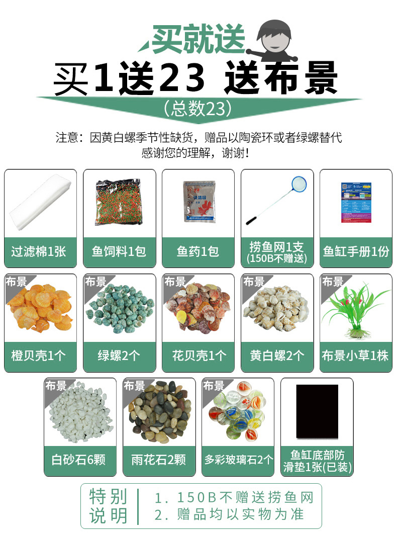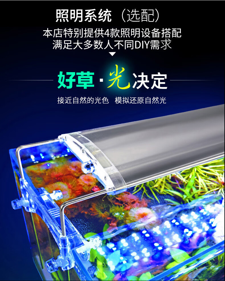 佳宝JEBO鱼缸水族箱懒人鱼缸家用客厅办公室金鱼缸中小型玻璃鱼缸过滤鱼缸QR223(235*160*275)