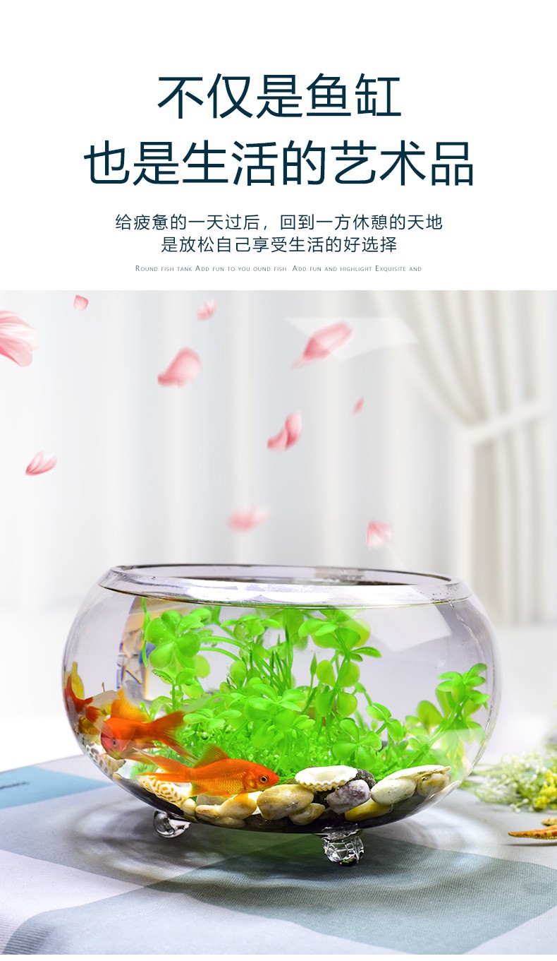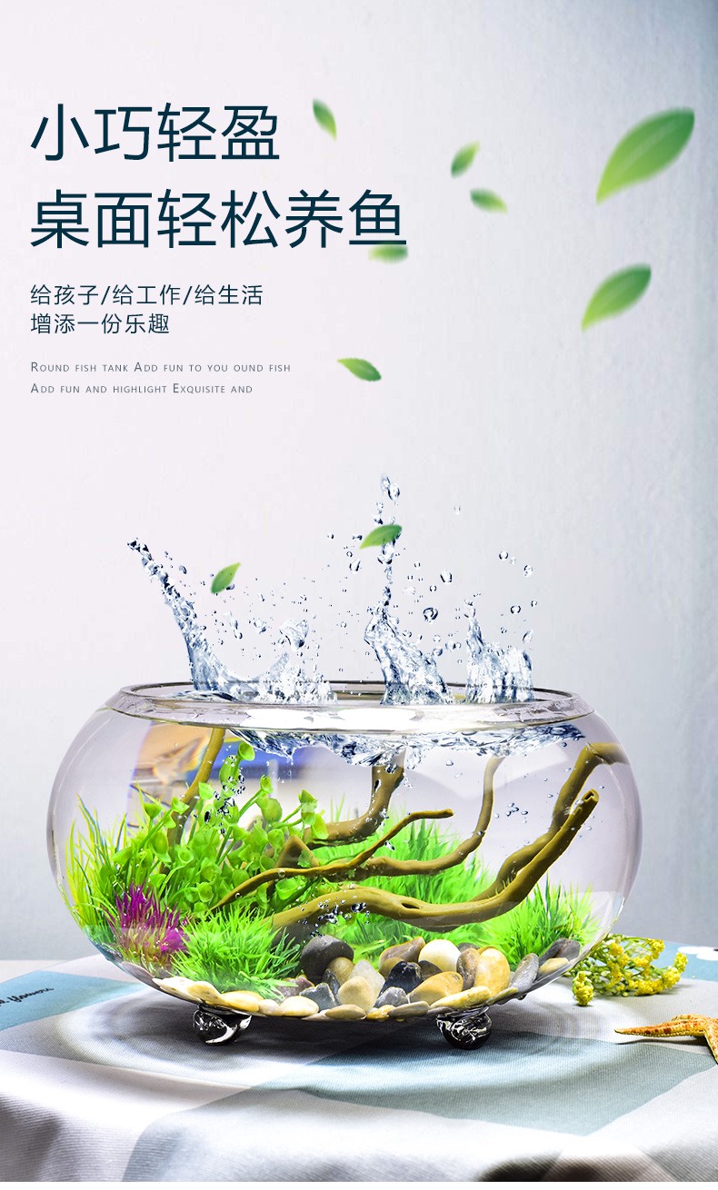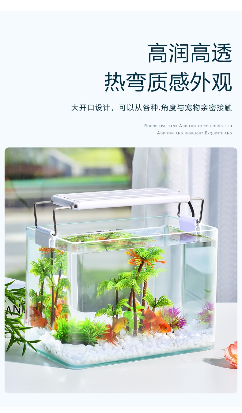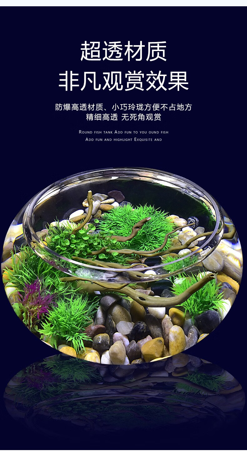 喜莱卡水族箱办公桌面透明鱼缸椭圆金鱼缸创意小型造景生态圆形鱼缸家用浮法玻璃鱼缸热带鱼缸懒人鱼缸大号