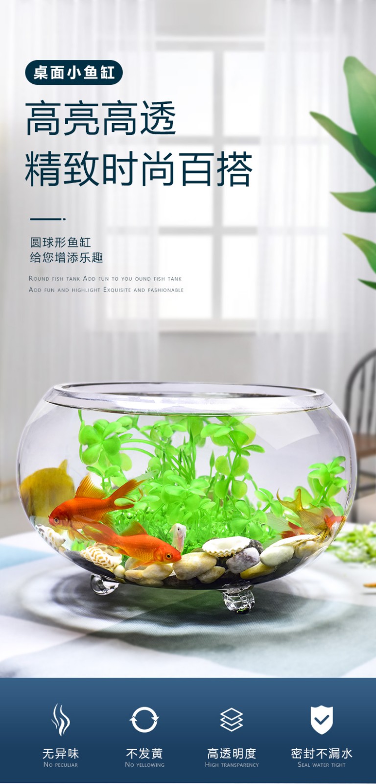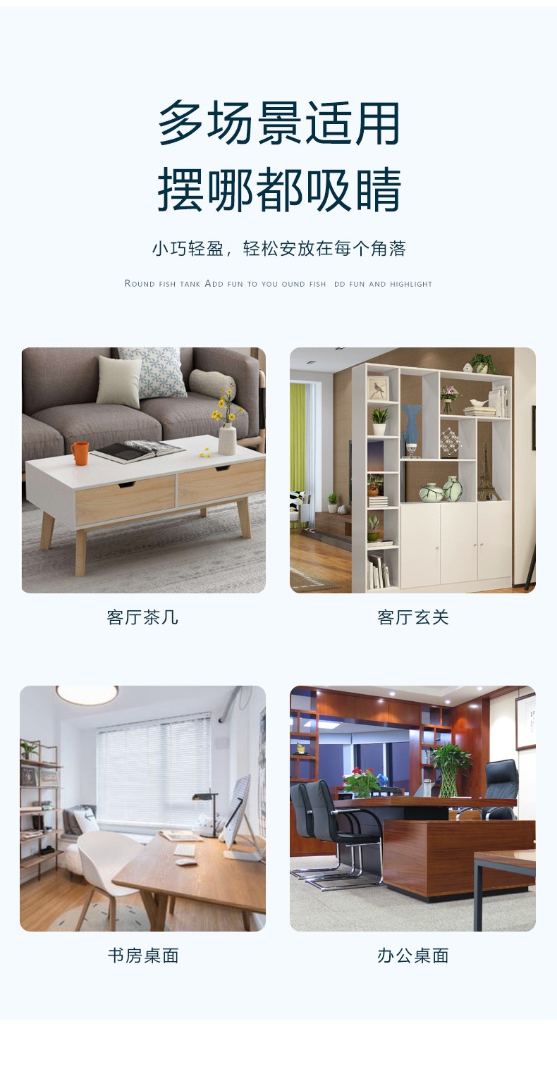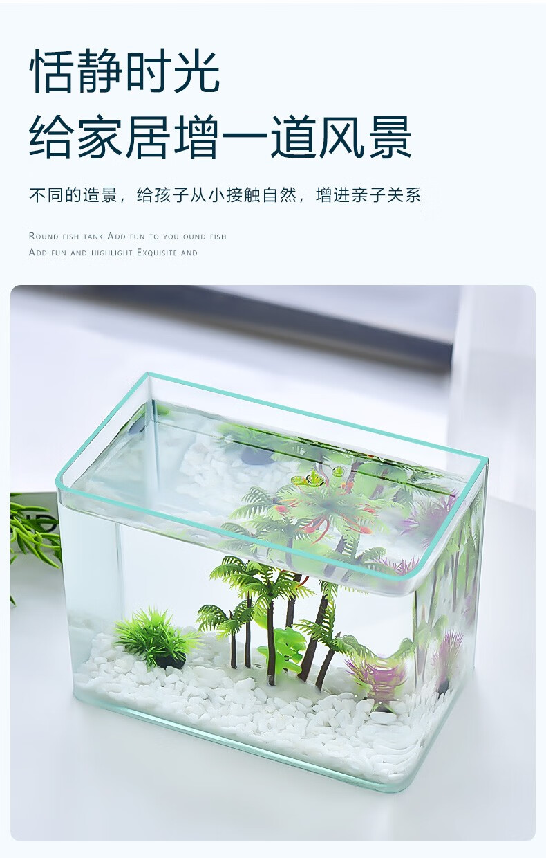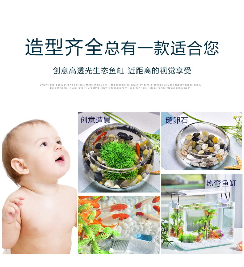 喜莱卡水族箱办公桌面透明鱼缸椭圆金鱼缸创意小型造景生态圆形鱼缸家用浮法玻璃鱼缸热带鱼缸懒人鱼缸大号