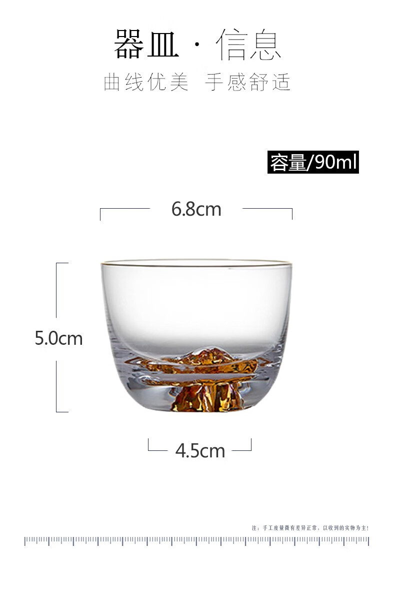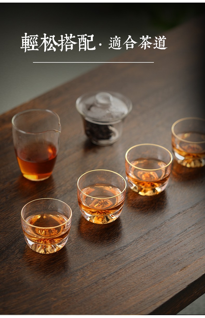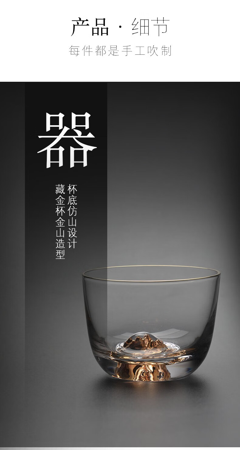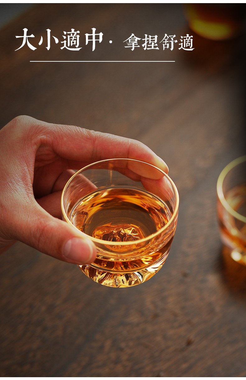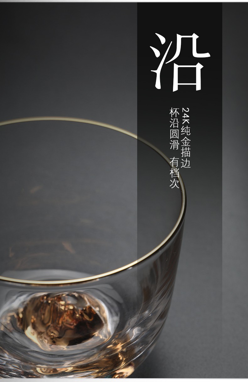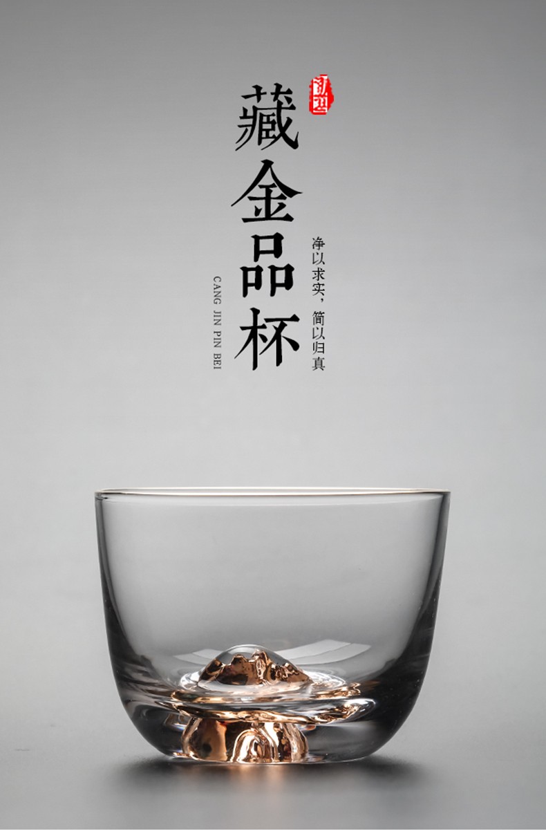 初雪玻璃小茶杯主人杯单杯日式功夫茶杯水晶高端品茗杯个人茶道茶具藏金杯